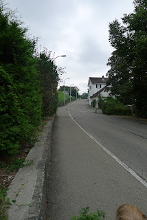 This is the long steep hill from the train station to our apartment. It doesn't look as bad as it is. I can get up it now with just L in the stroller, but when T is in the stroller, too, and I have groceries on my back I have to stop halfway and catch my breath.